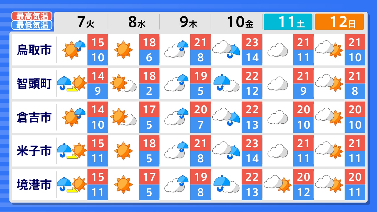 境港市 米子市 日南町 大山町 倉吉市 鳥取市 智頭町 若桜町
