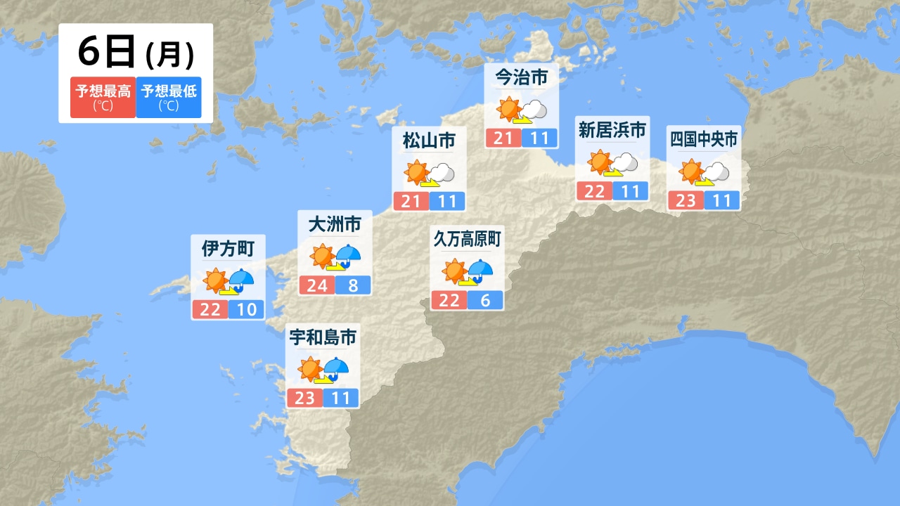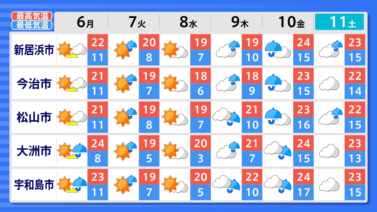 伊方町 大洲市 宇和島市 松山市 久万高原町 今治市 新居浜市 四国中央市