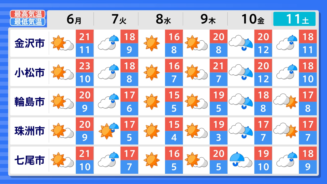 珠洲市 輪島市 七尾市 羽咋市 金沢市 小松市 加賀市