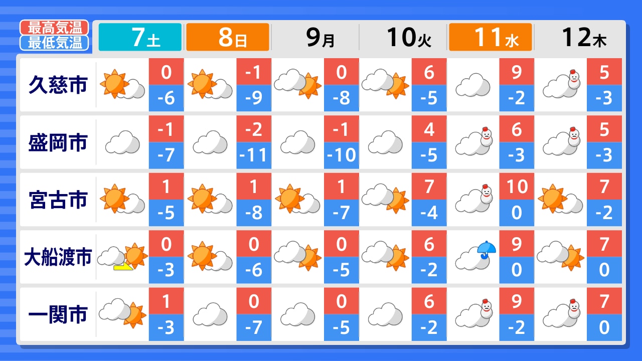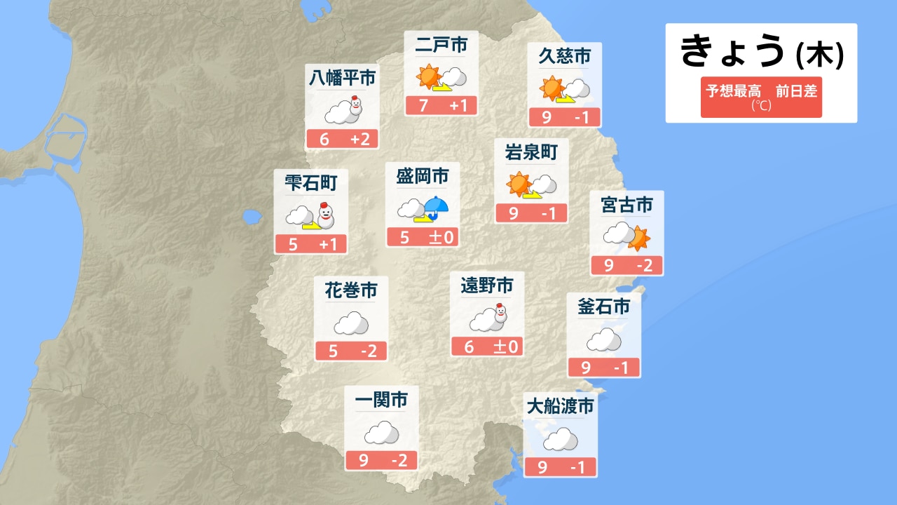 八幡平市 二戸市 久慈市 雫石町 盛岡市 岩泉町 宮古市 花巻市 遠野市 釜石市 一関市 大船渡市
