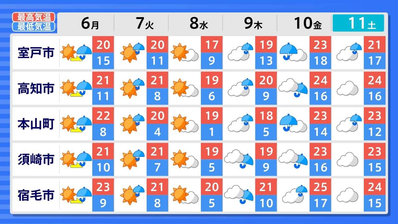 梼原町 四万十町 宿毛市 土佐清水市 須崎市 本山町 高知市 安芸市 馬路村 室戸市