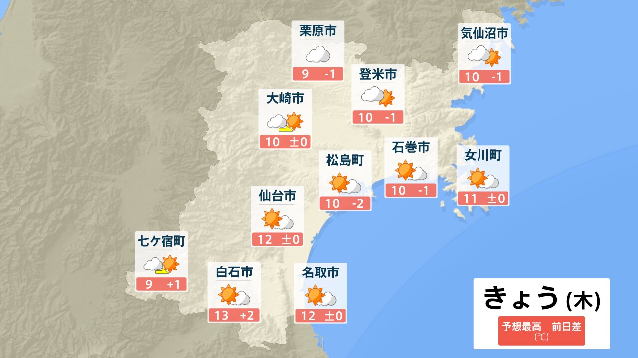 栗原市 気仙沼市 登米市 大崎市 仙台市 松島町 石巻市 女川町 七ヶ宿町 白石市 名取市