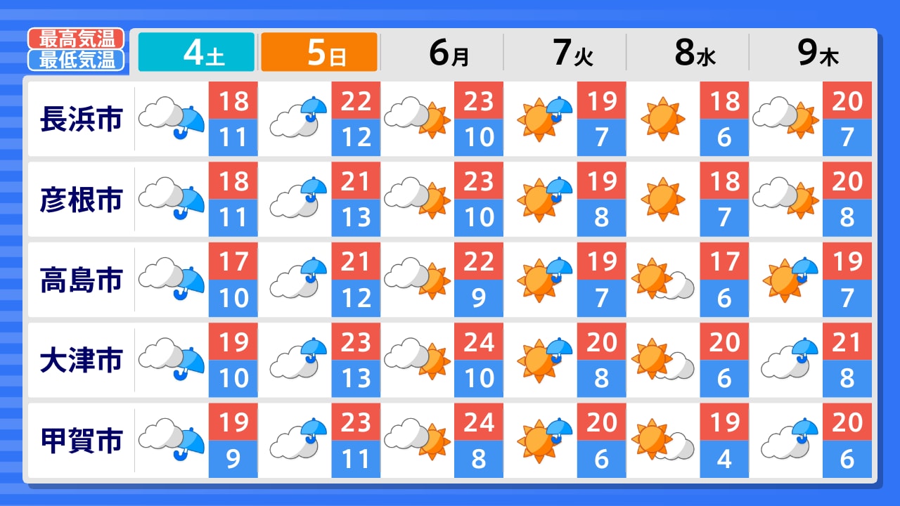 長浜市 高島市 彦根市 近江八幡市 大津市 甲賀市