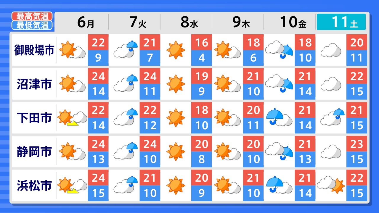 浜松市 川根本町 掛川市 御前崎市 静岡市 富士宮市 沼津市 御殿場市 熱海市 下田市
