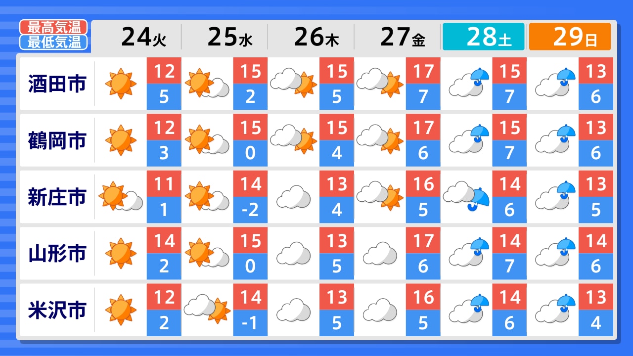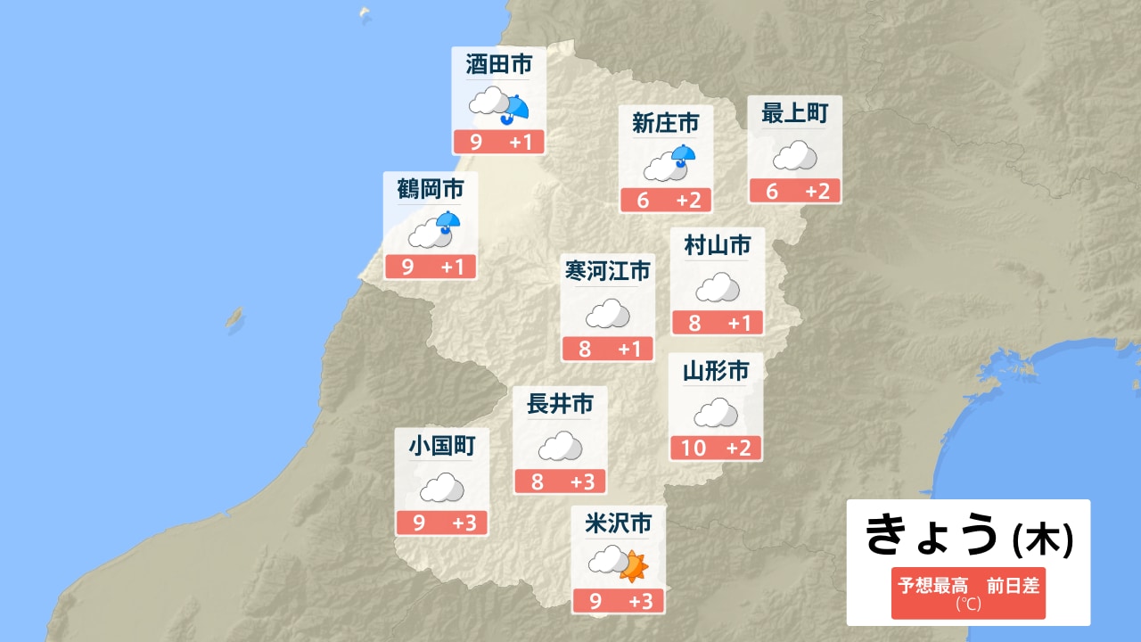 酒田市 新庄市 最上町 鶴岡市 寒河江市 村山市 山形市 長井市 小国町 米沢市
