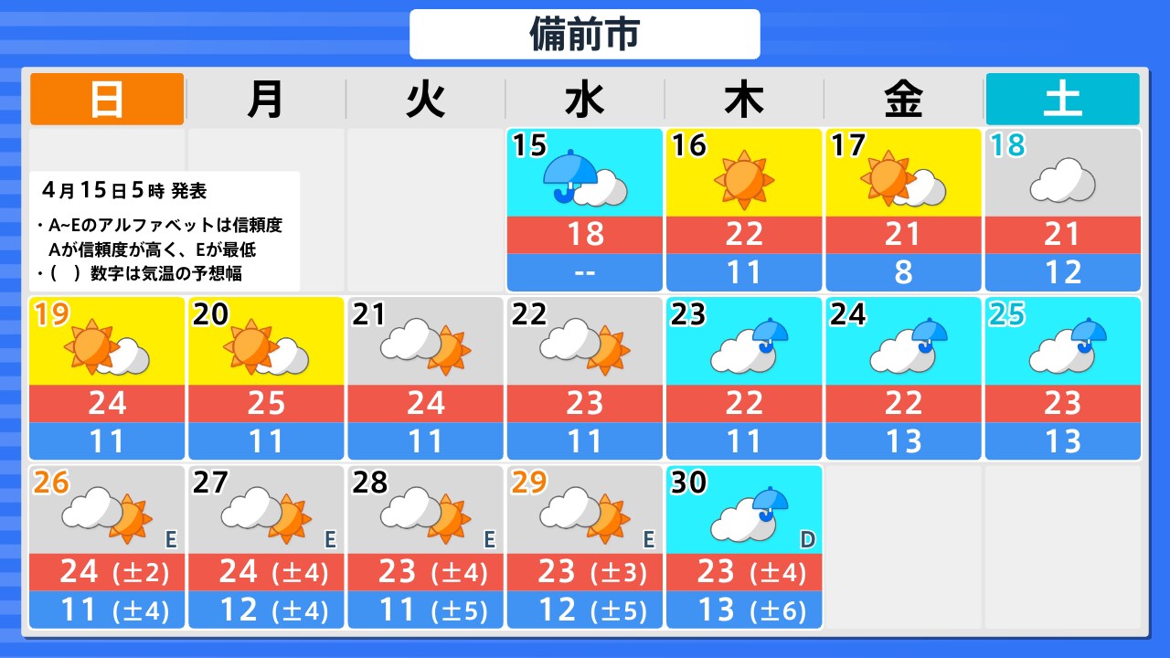 4月15日(水)の天気