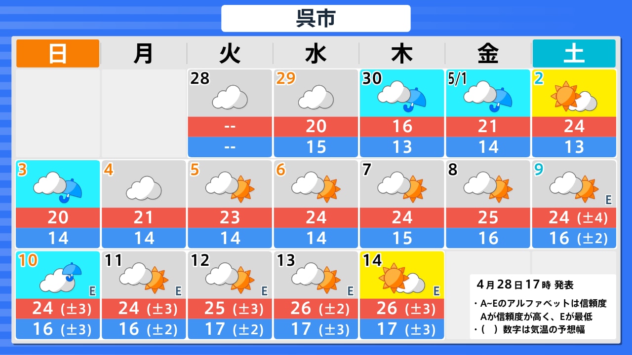 4月28日(火)の天気