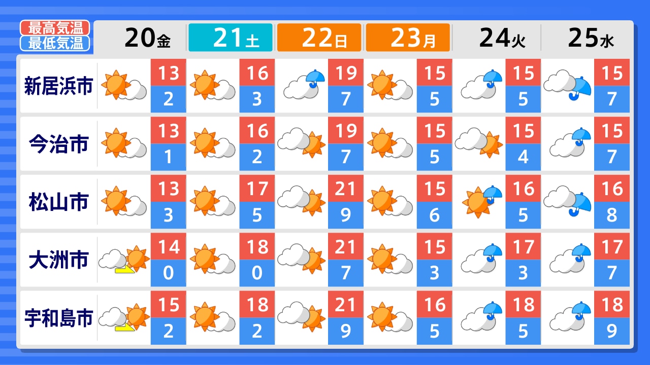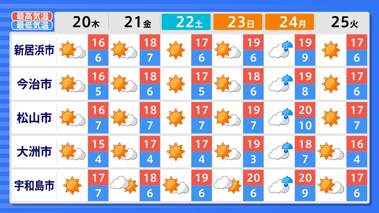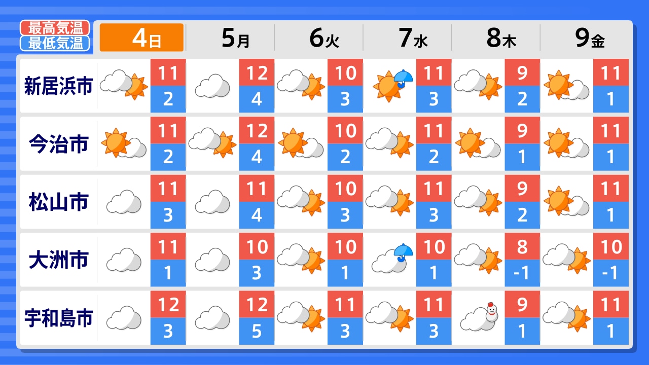 伊方町 大洲市 宇和島市 松山市 久万高原町 今治市 新居浜市 四国中央市