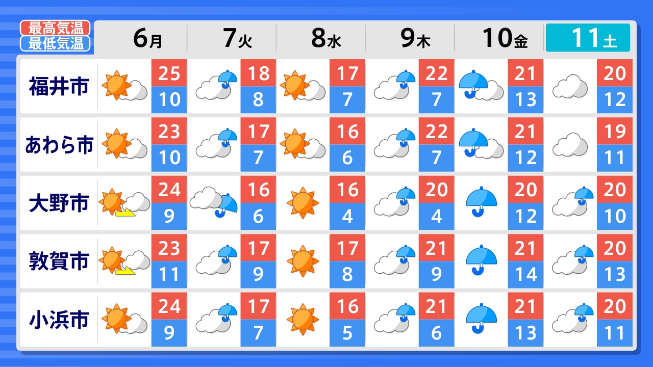 あわら市 大野市 福井市 南越前町 敦賀市 小浜市 高浜町