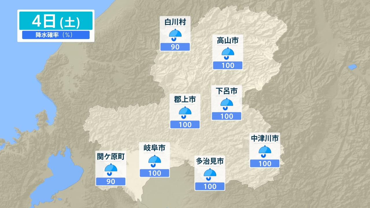 白川村 高山市 下呂市 郡上市 中津川市 多治見市 岐阜市 関ケ原町