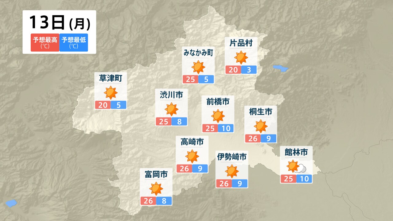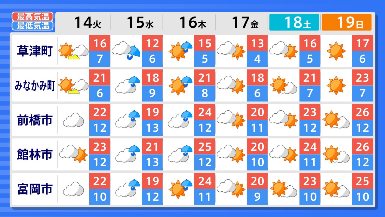 草津町 みなかみ町 片品村 渋川市 前橋市 桐生市 高崎市 富岡市 伊勢崎市 館林市