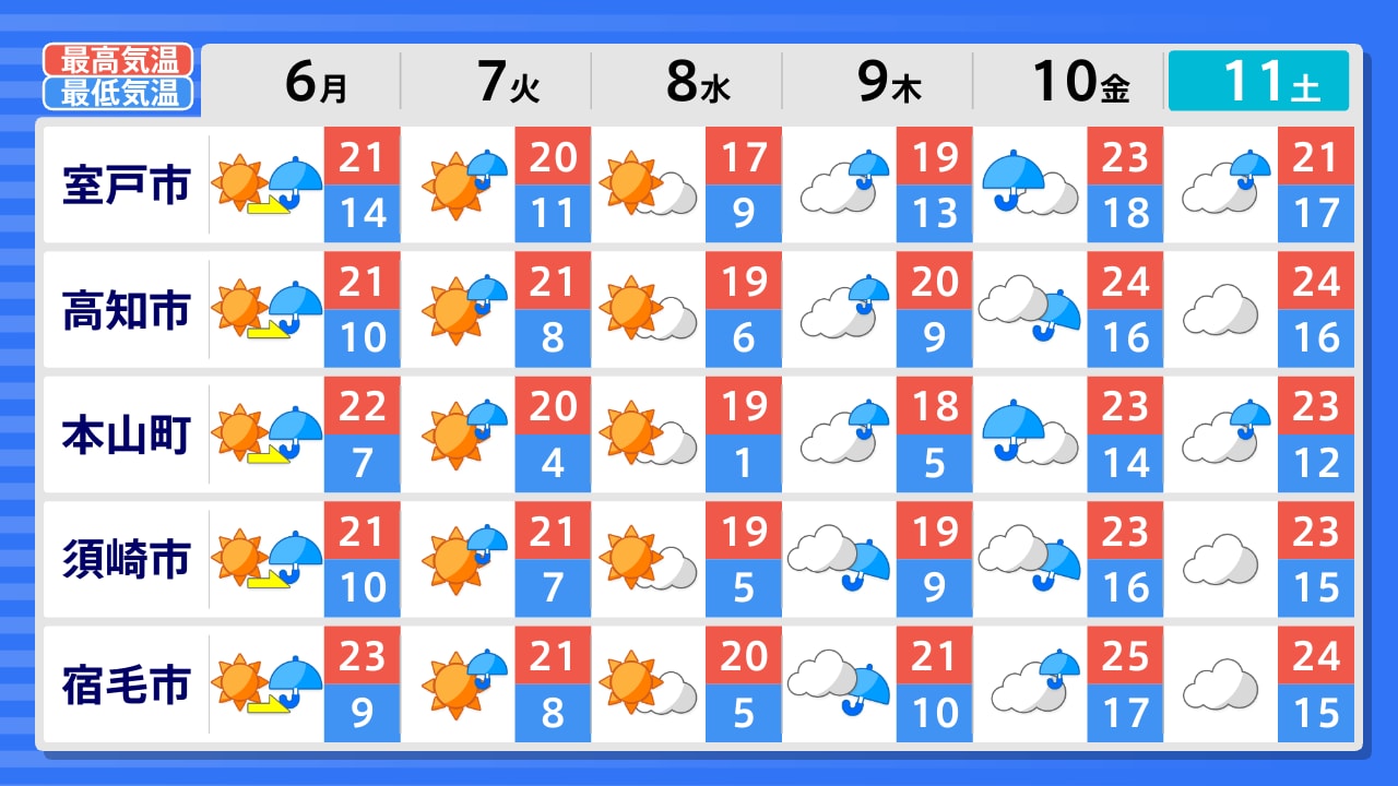 梼原町 四万十町 宿毛市 土佐清水市 須崎市 本山町 高知市 安芸市 馬路村 室戸市
