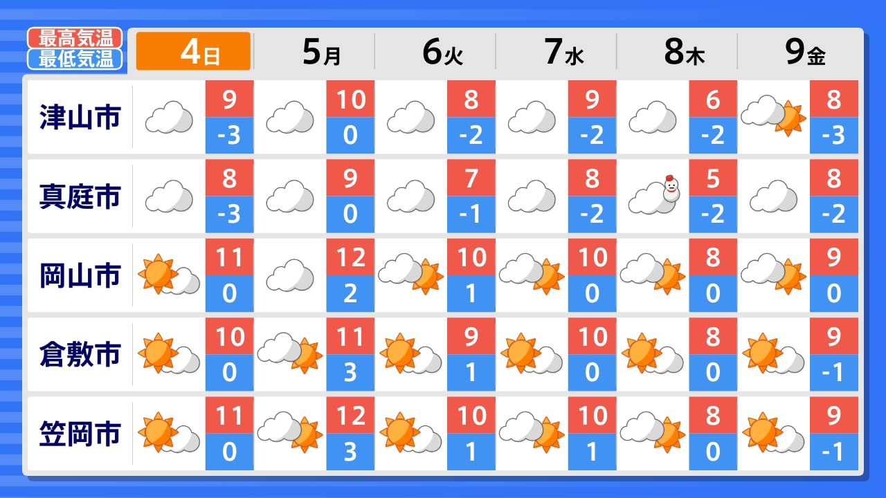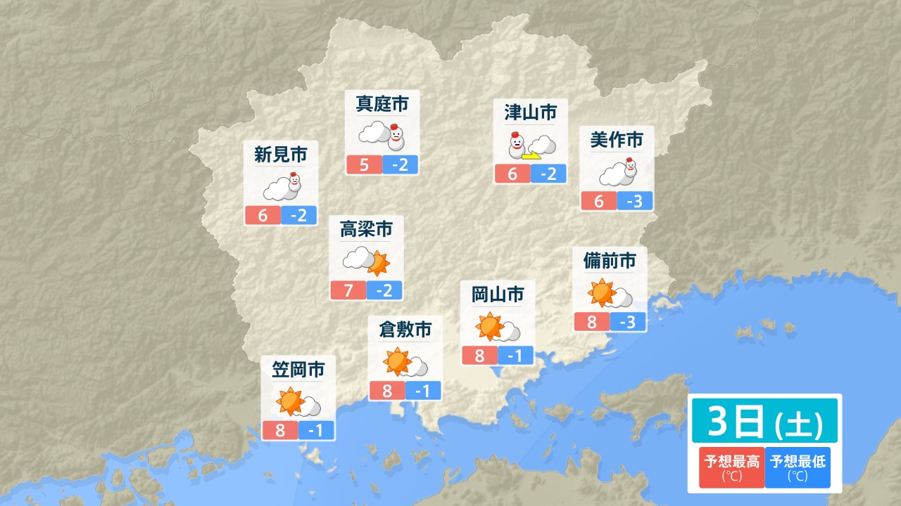 真庭市 新見市 高梁市 笠岡市 倉敷市 津山市 美作市 岡山市 備前市