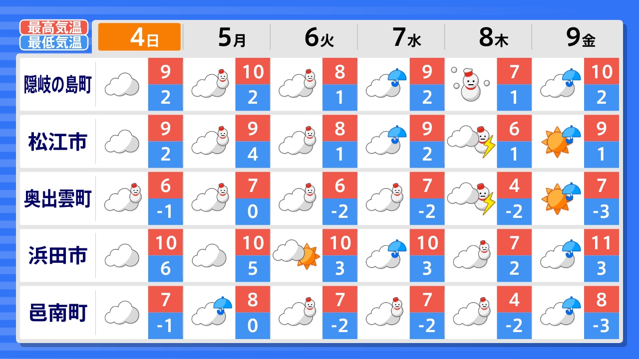益田市 浜田市 大田市 邑南町 出雲市 松江市 奥出雲町 隠岐の島町
