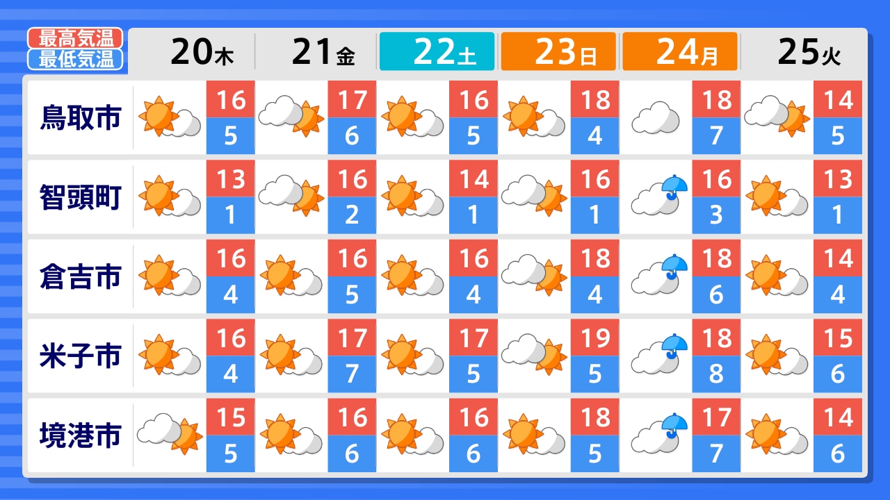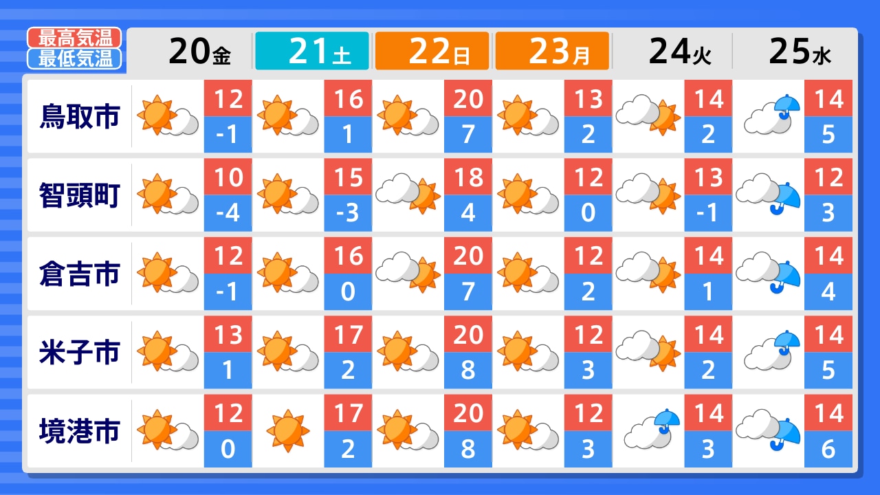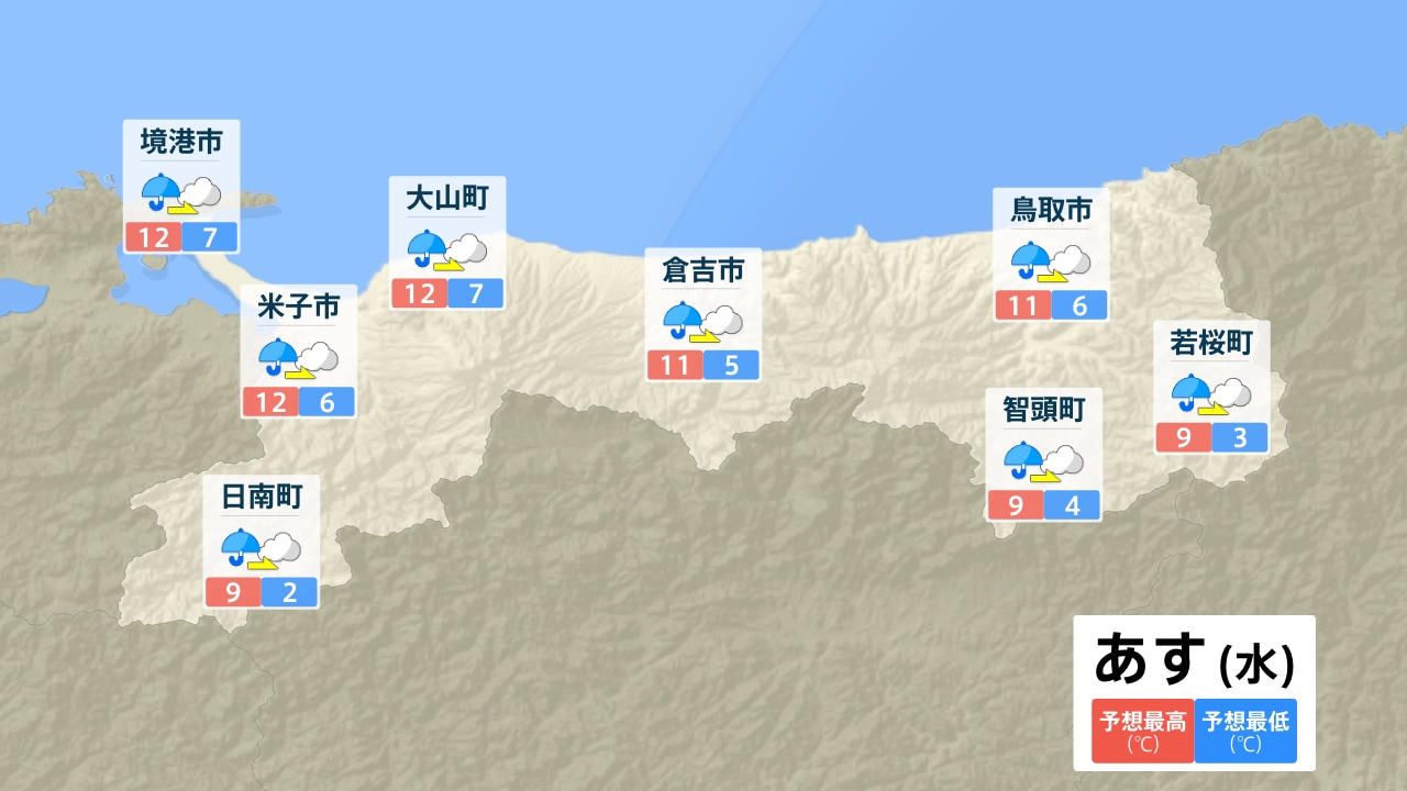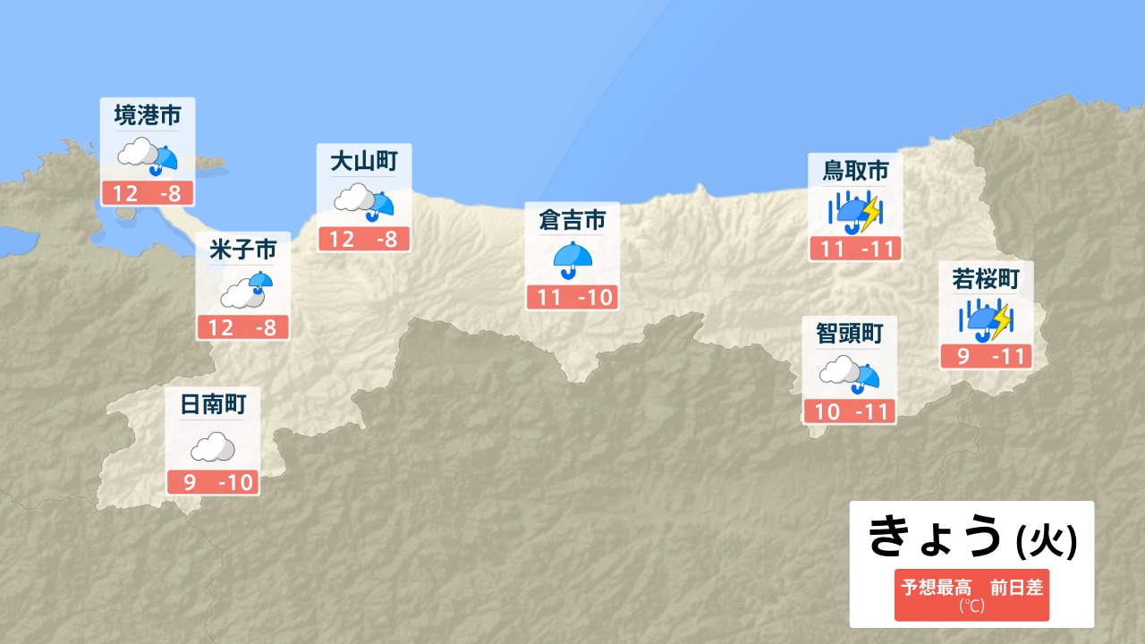境港市 米子市 日南町 大山町 倉吉市 鳥取市 智頭町 若桜町
