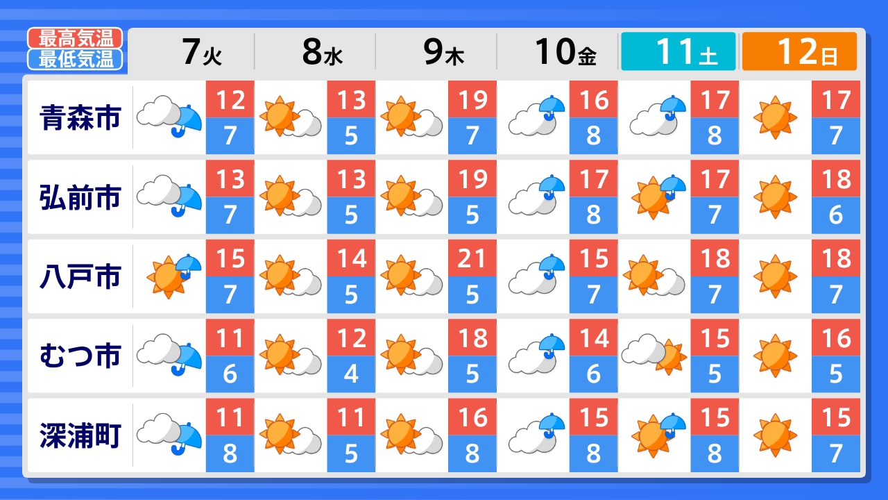 今別町 むつ市 五所川原市 青森市 野辺地町 深浦町 弘前市 十和田市 八戸市