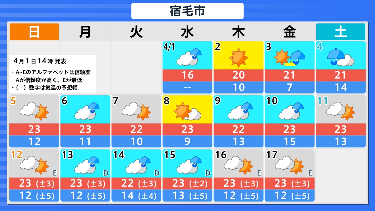 4月1日(水)の天気