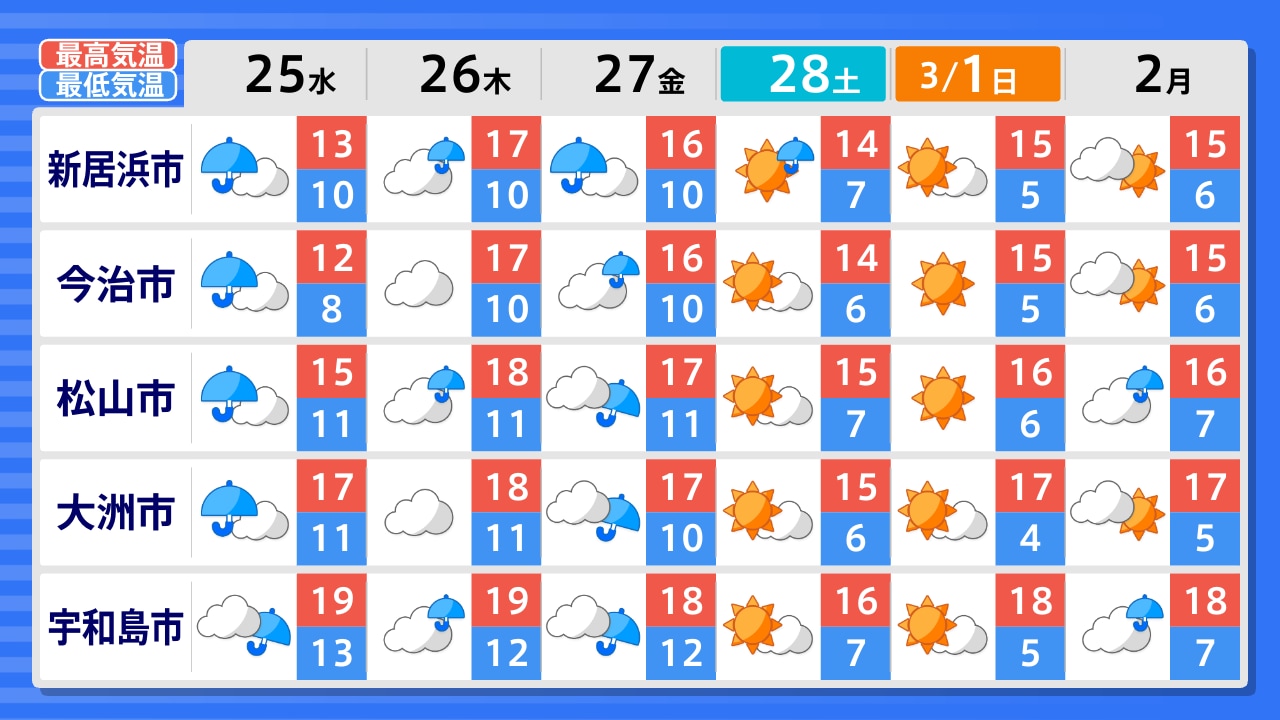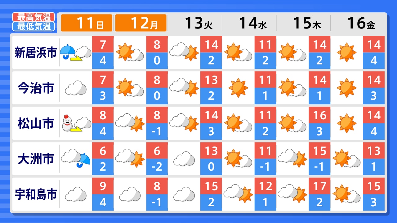 伊方町 大洲市 宇和島市 松山市 久万高原町 今治市 新居浜市 四国中央市
