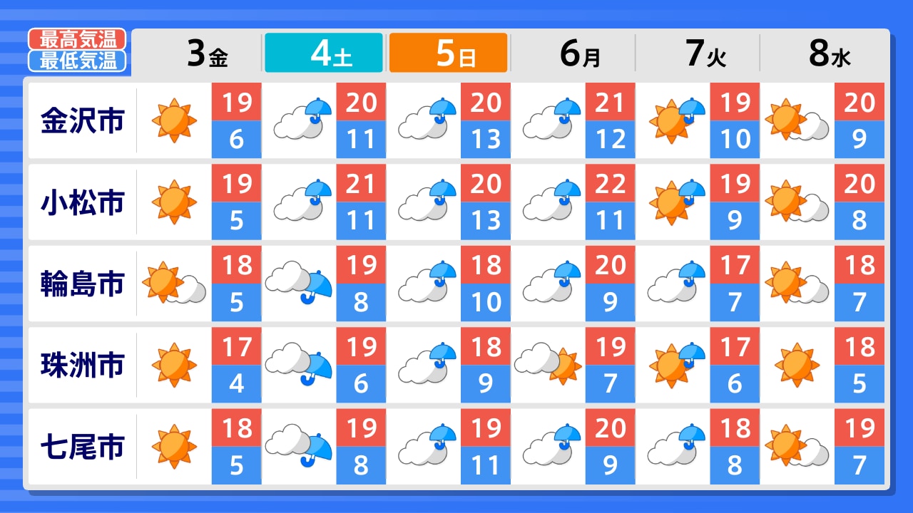 珠洲市 輪島市 七尾市 羽咋市 金沢市 小松市 加賀市