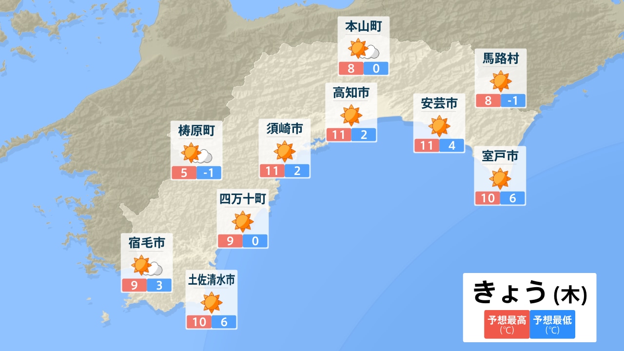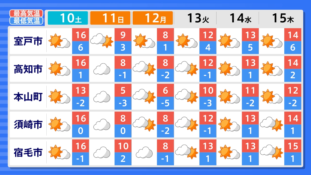 梼原町 四万十町 宿毛市 土佐清水市 須崎市 本山町 高知市 安芸市 馬路村 室戸市