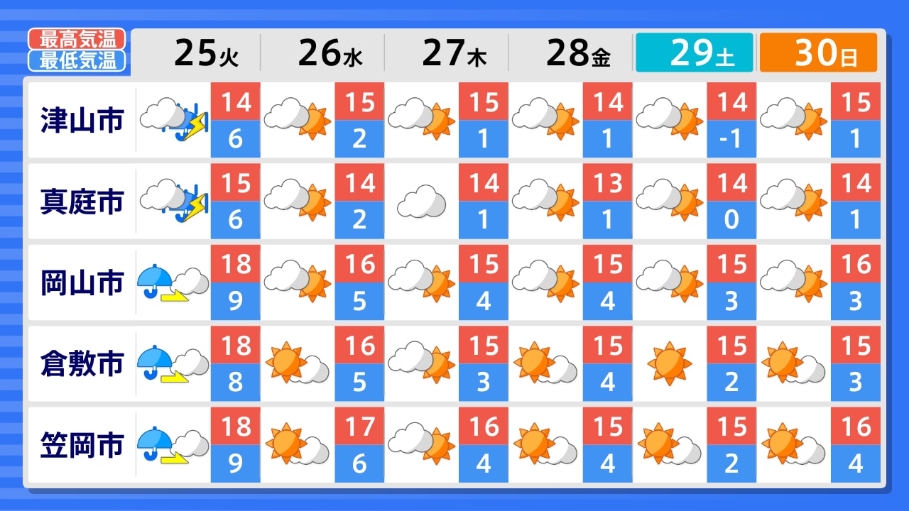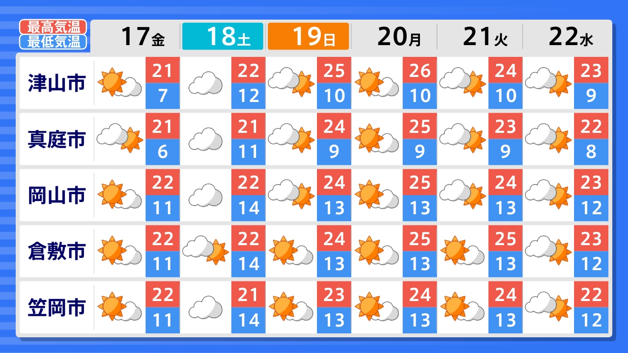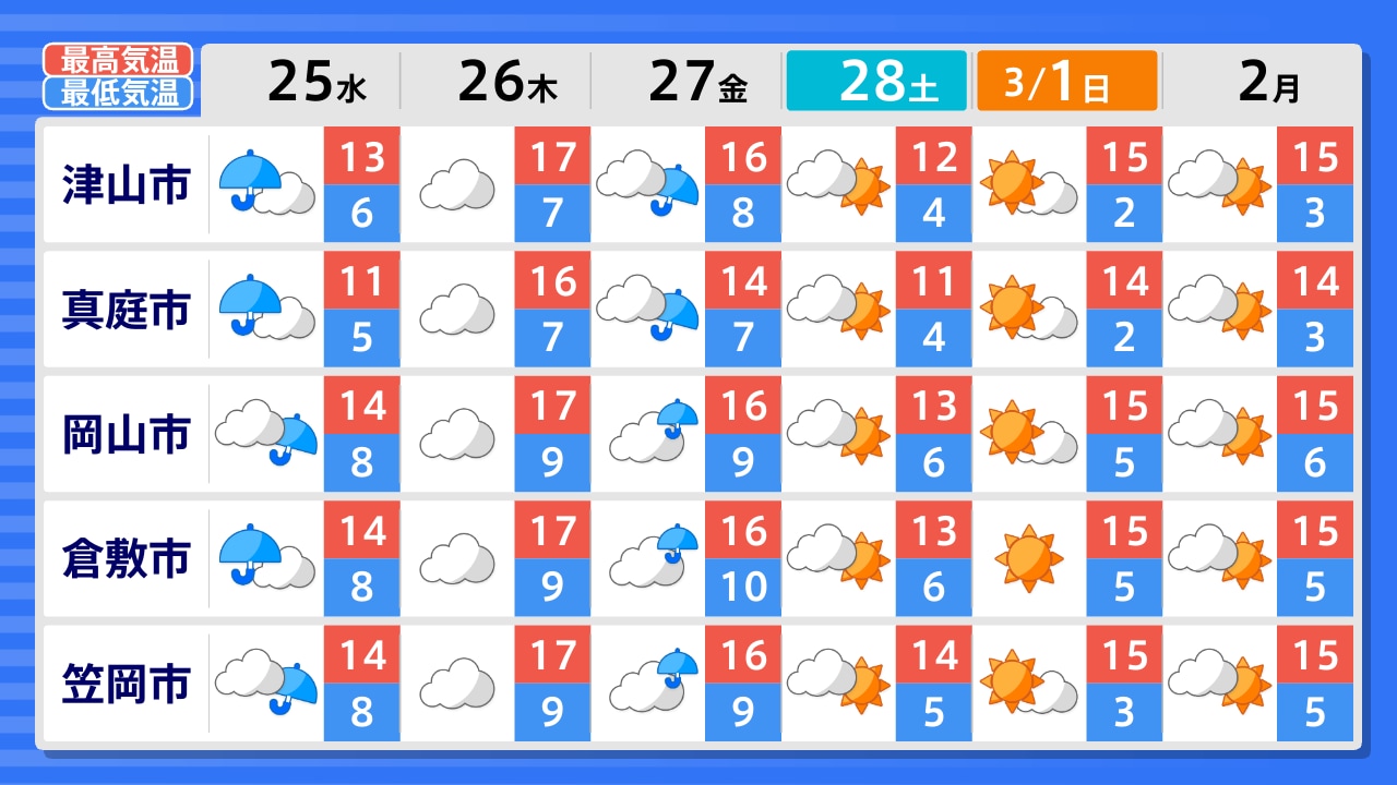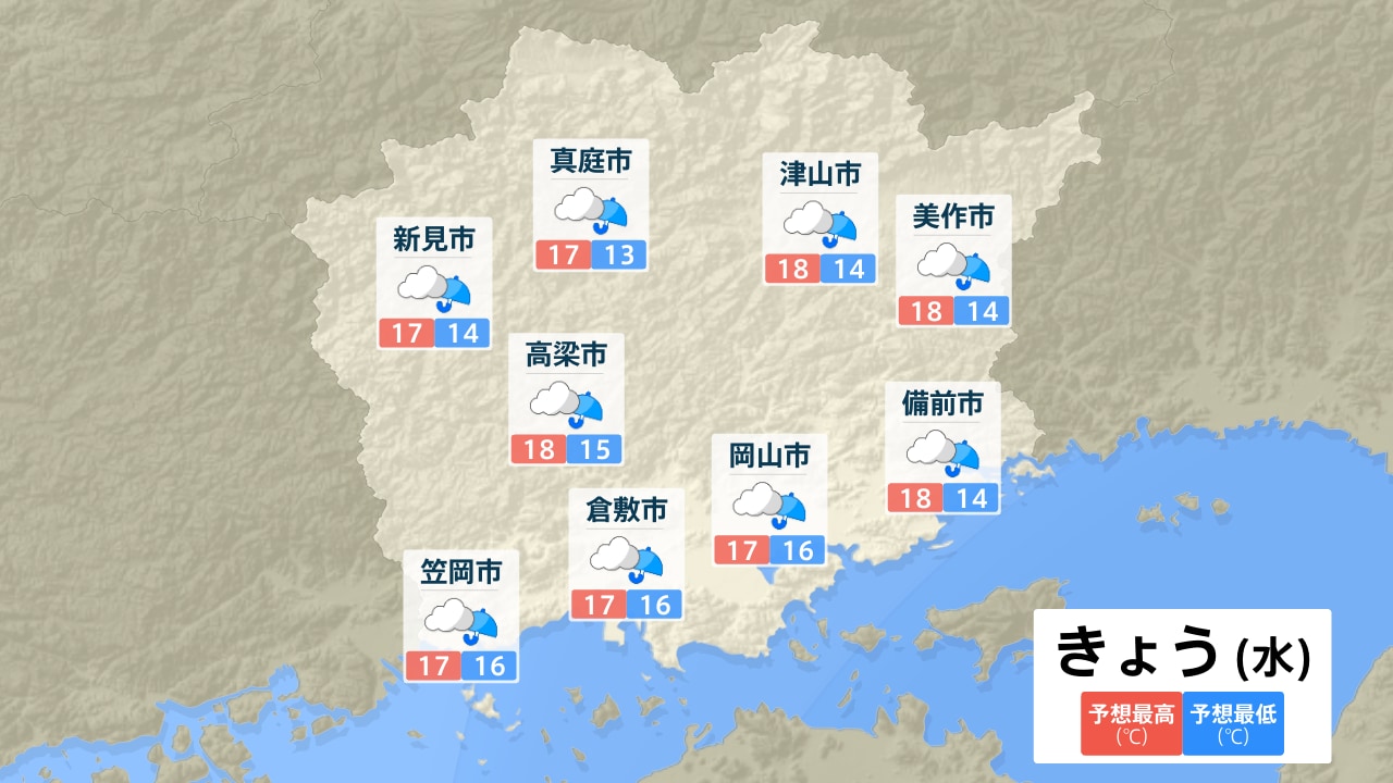 真庭市 新見市 高梁市 笠岡市 倉敷市 津山市 美作市 岡山市 備前市