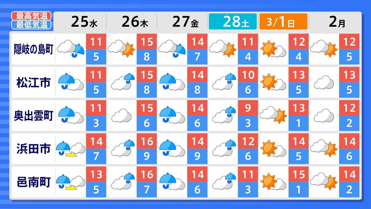 益田市 浜田市 大田市 邑南町 出雲市 松江市 奥出雲町 隠岐の島町