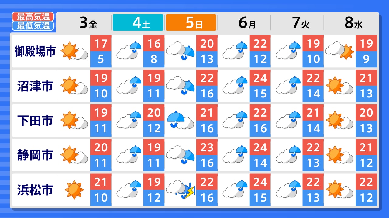 浜松市 川根本町 掛川市 御前崎市 静岡市 富士宮市 沼津市 御殿場市 熱海市 下田市