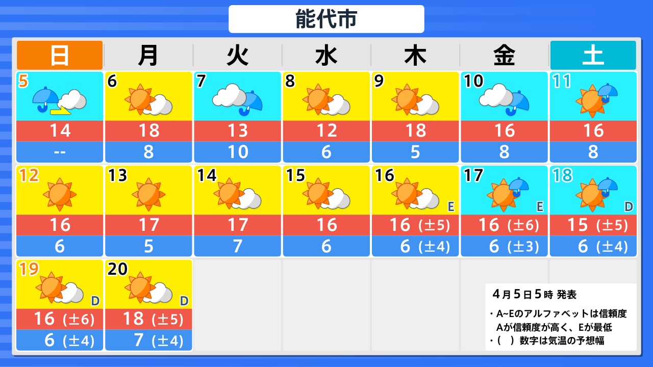 4月5日(日)の天気