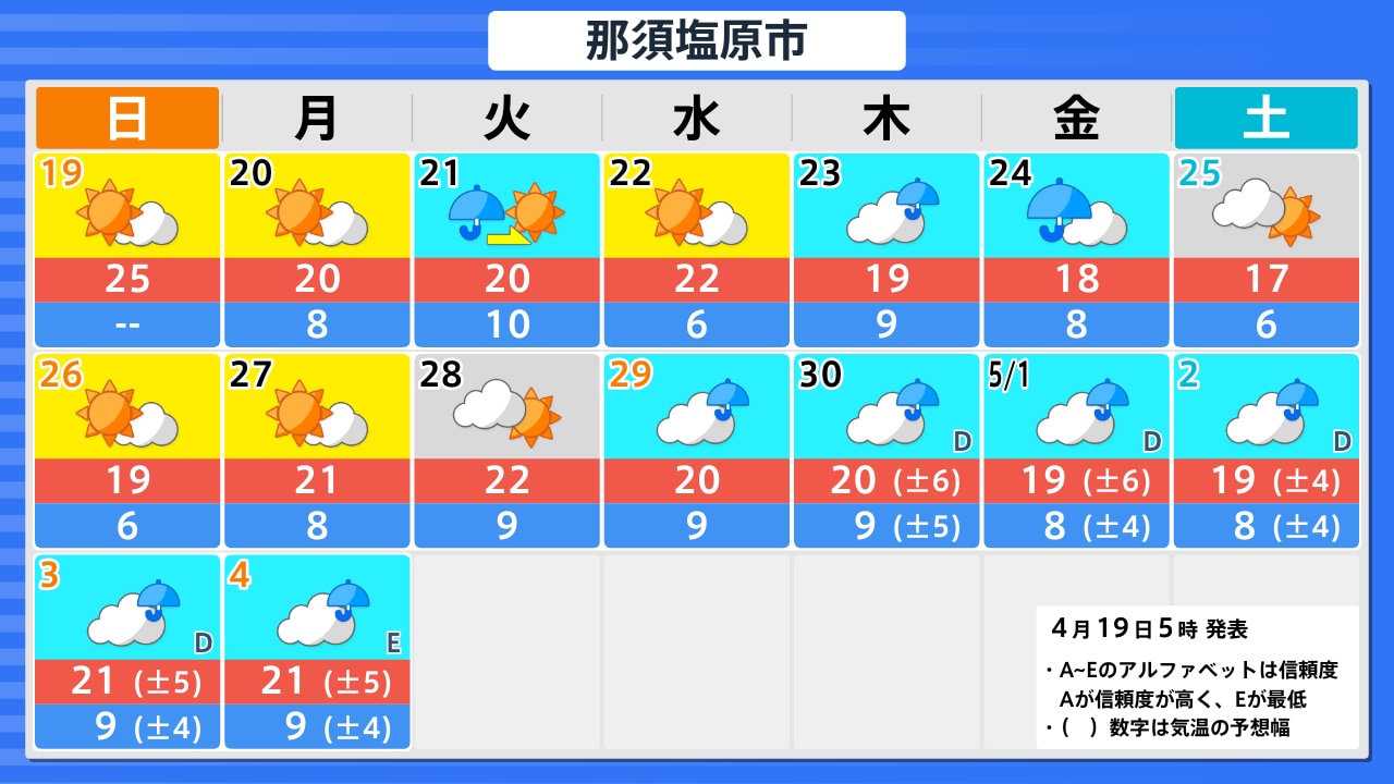 4月19日(日)の天気