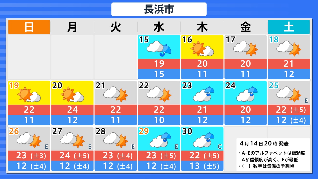 【早期天候情報】4月15日頃から『10年に1度程度の“著しい高温”の可能性』近畿や北陸・九州南部・奄美地方など広範囲で 近畿では平年差+2.6度以上予想 農作物の管理などに注意を(近畿・北陸・東海・中国・四国・九州北部南部を画像で一覧表示) 2026/04/10