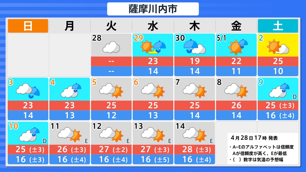 4月28日(火)の天気