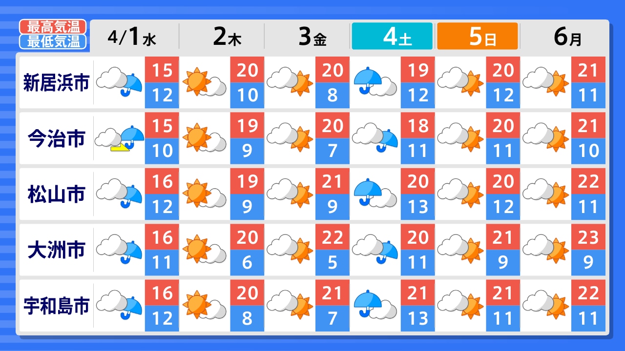 伊方町 大洲市 宇和島市 松山市 久万高原町 今治市 新居浜市 四国中央市