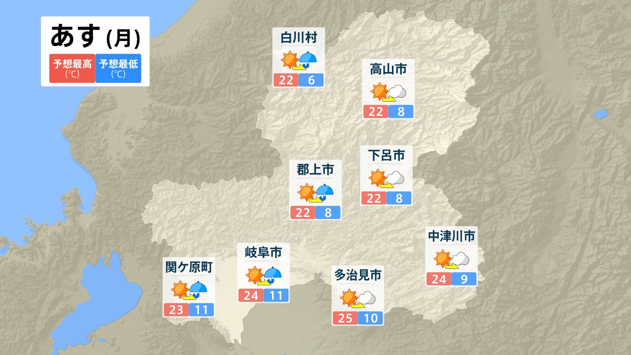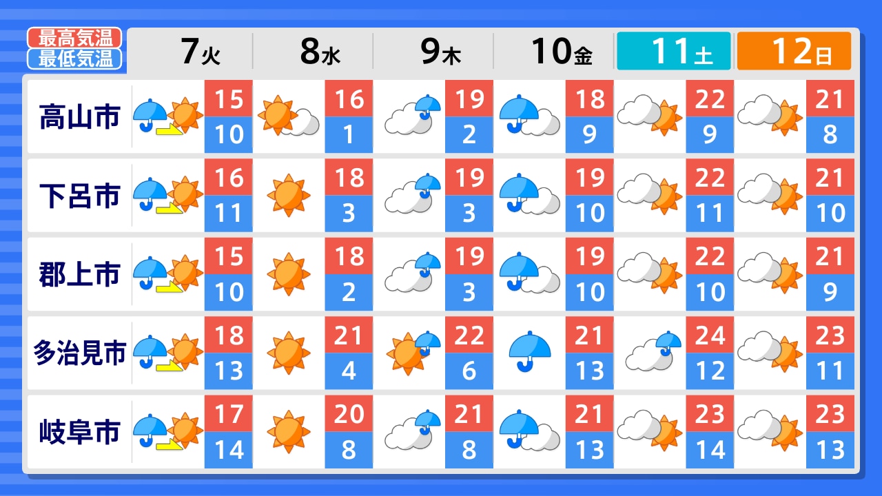 白川村 高山市 下呂市 郡上市 中津川市 多治見市 岐阜市 関ケ原町