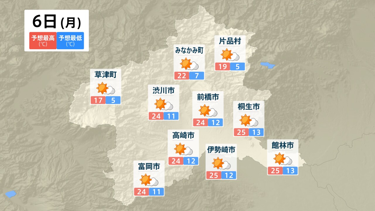 草津町 みなかみ町 片品村 渋川市 前橋市 桐生市 高崎市 富岡市 伊勢崎市 館林市
