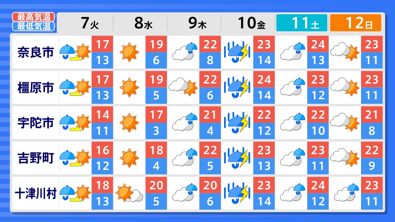 奈良市 橿原市 宇陀市 五條市 吉野町 上北山村 十津川村