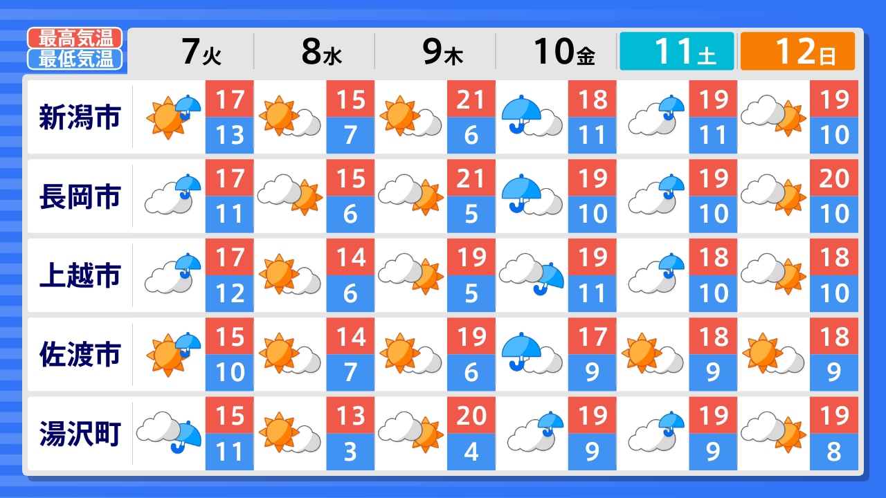 佐渡市 村上市 新潟市 阿賀町 長岡市 魚沼市 湯沢町 上越市 糸魚川市