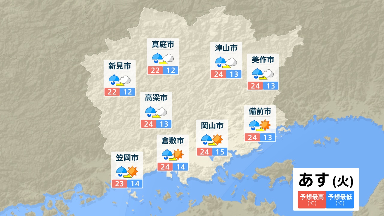 真庭市 新見市 高梁市 笠岡市 倉敷市 津山市 美作市 岡山市 備前市