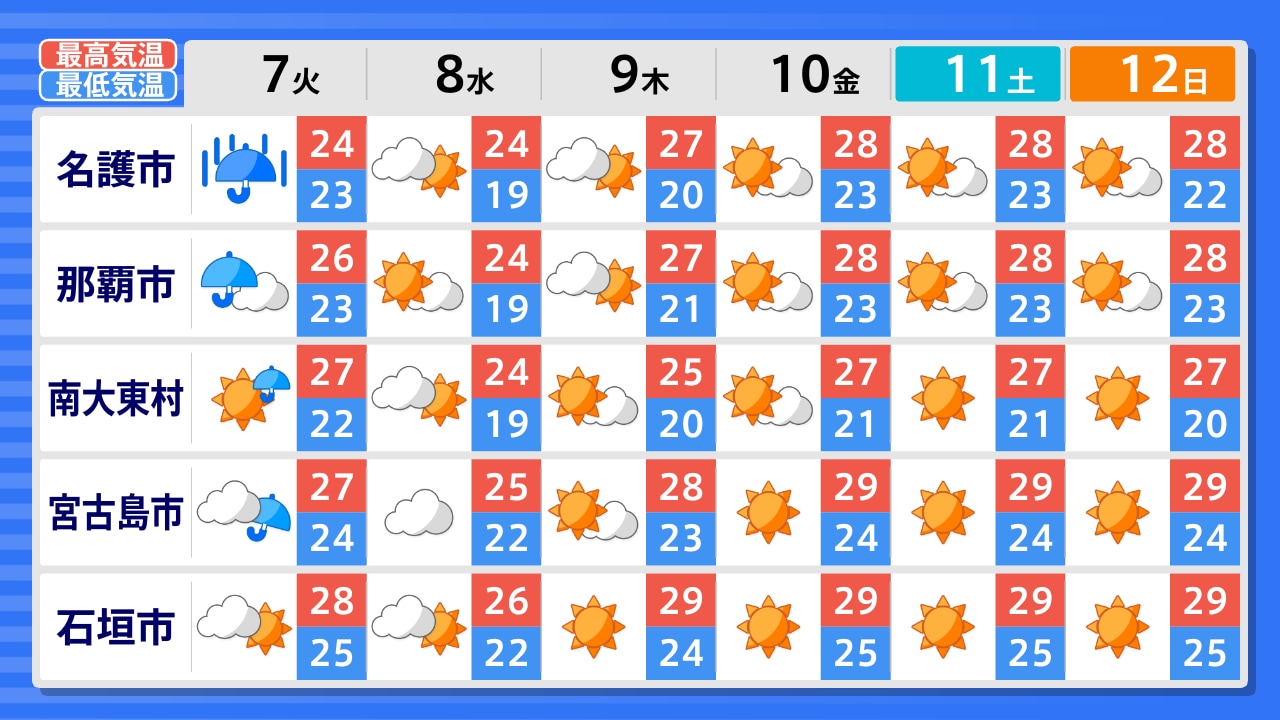 与那国町 石垣市 宮古島市 南大東村 名護市 久米島町 那覇市
