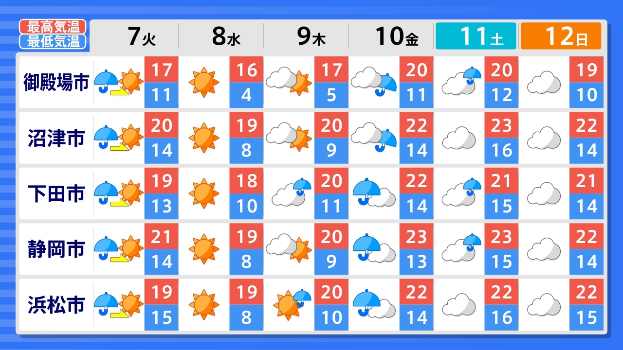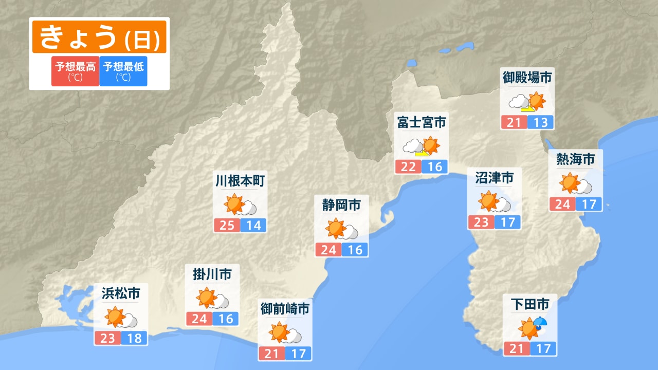 浜松市 川根本町 掛川市 御前崎市 静岡市 富士宮市 沼津市 御殿場市 熱海市 下田市