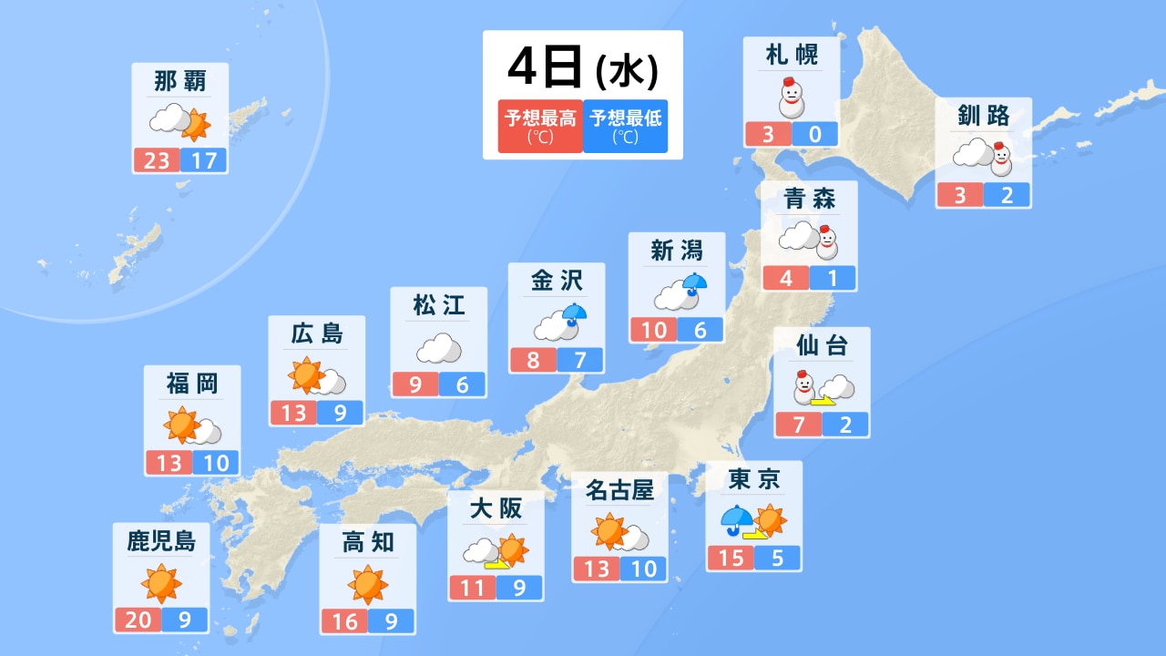 3月3日(火)の天気
