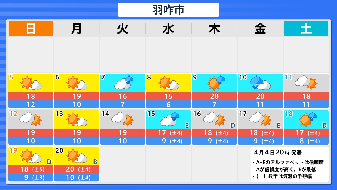 4月5日(日)の天気
