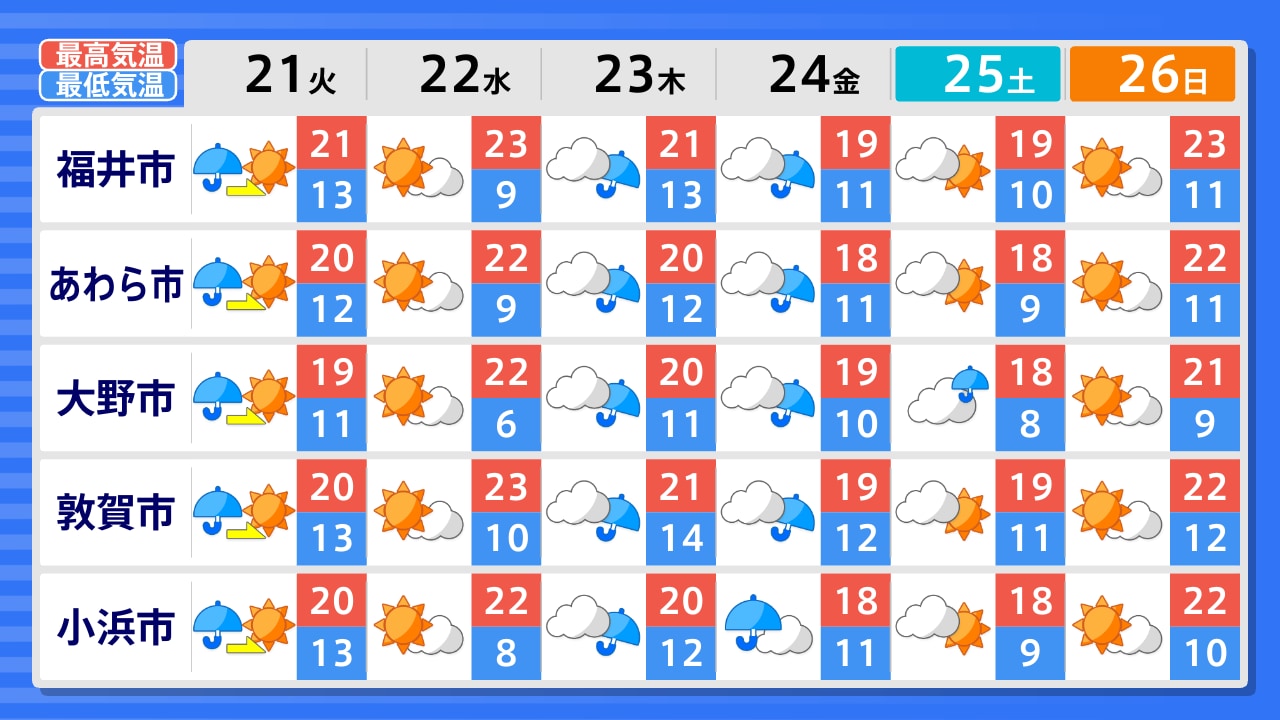 あわら市 大野市 福井市 南越前町 敦賀市 小浜市 高浜町