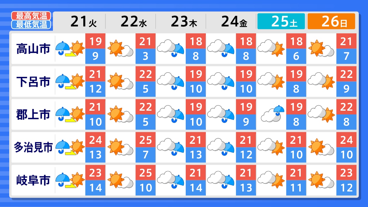 白川村 高山市 下呂市 郡上市 中津川市 多治見市 岐阜市 関ケ原町