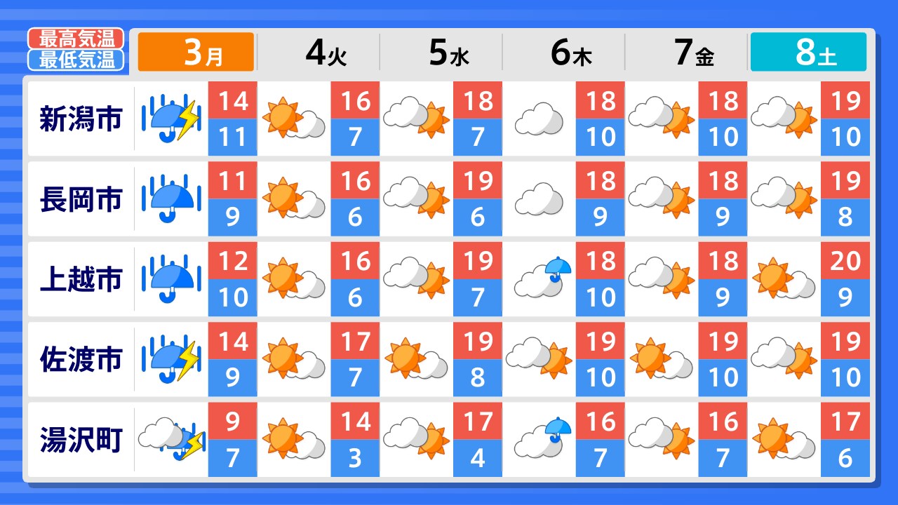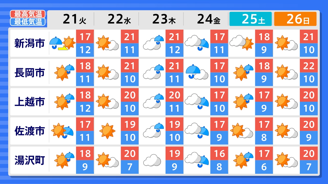 佐渡市 村上市 新潟市 阿賀町 長岡市 魚沼市 湯沢町 上越市 糸魚川市