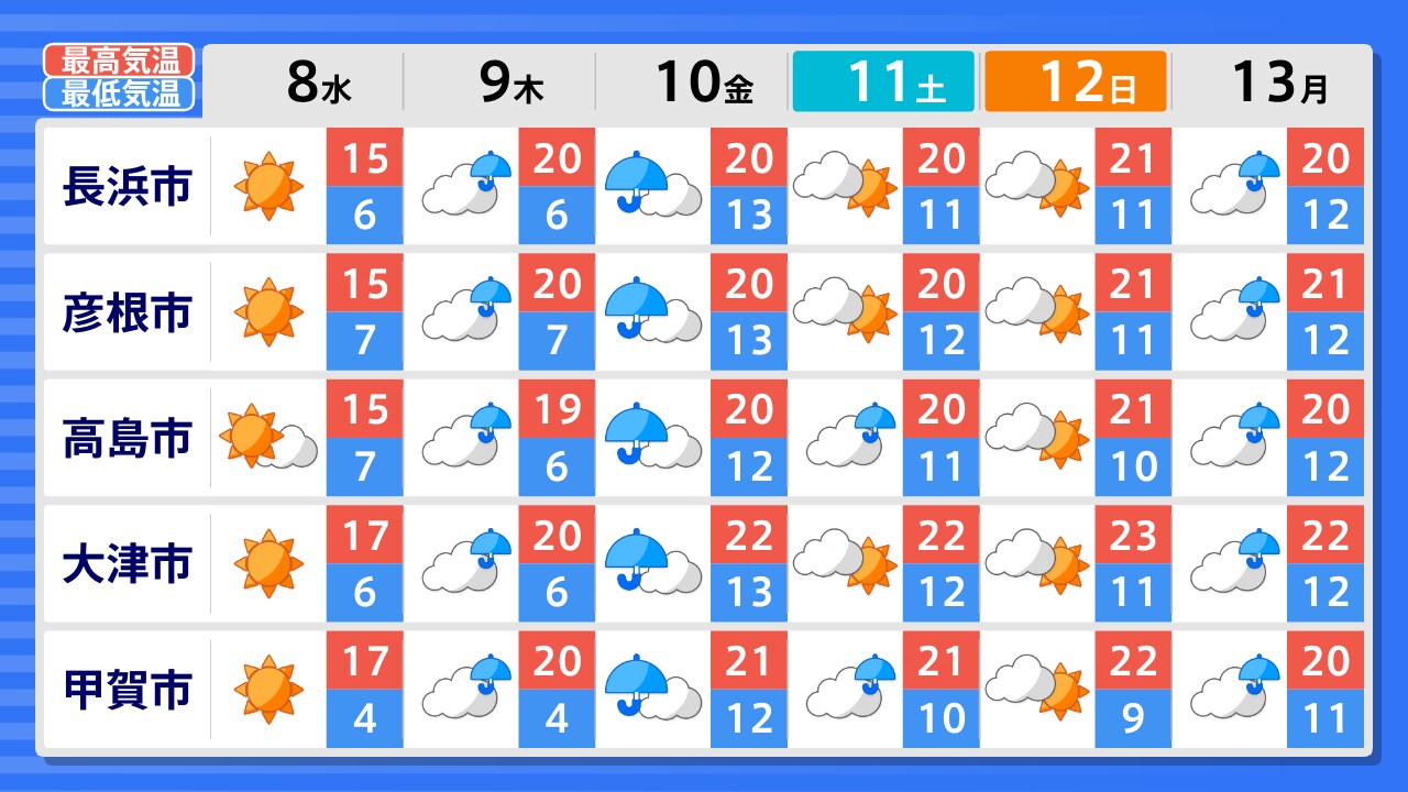 長浜市 高島市 彦根市 近江八幡市 大津市 甲賀市