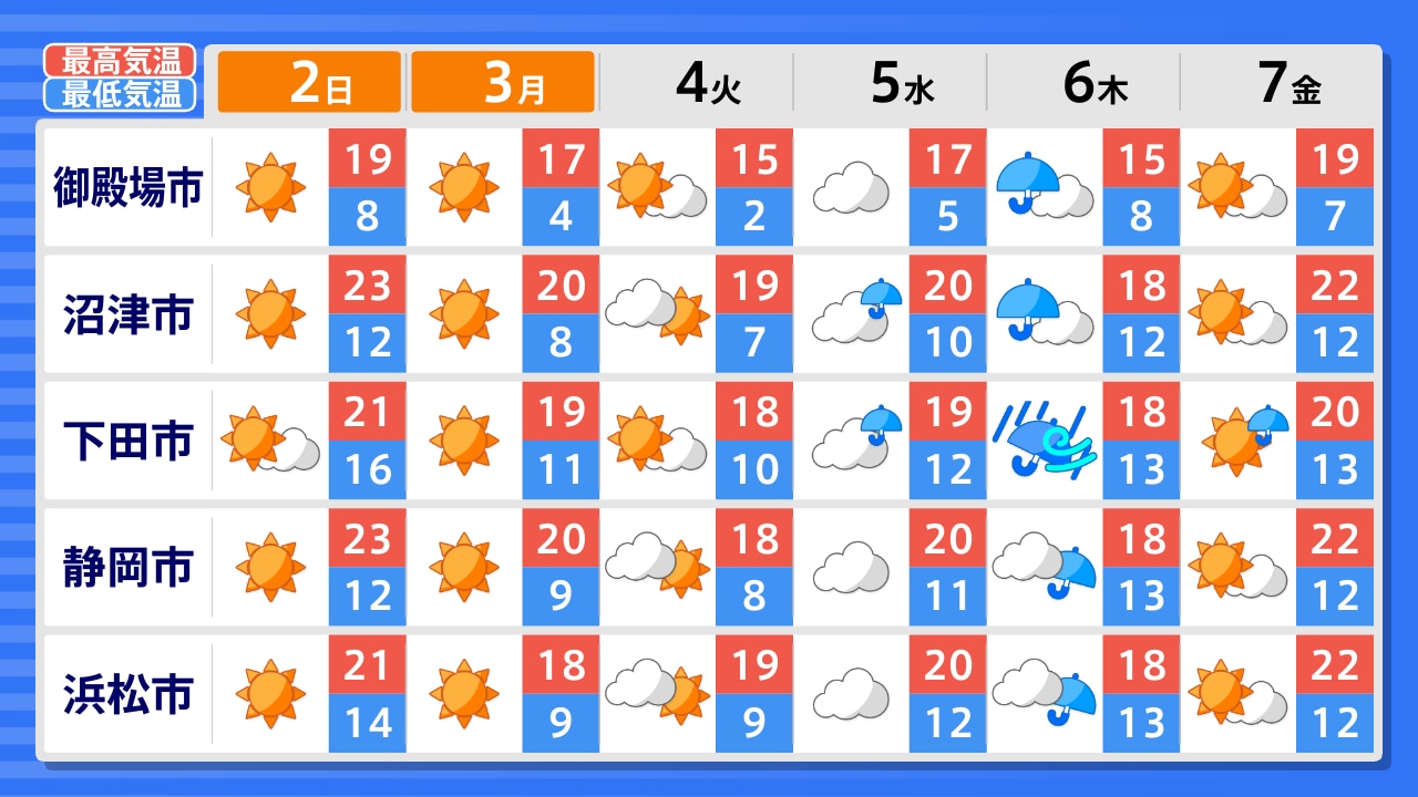 浜松市 川根本町 掛川市 御前崎市 静岡市 富士宮市 沼津市 御殿場市 熱海市 下田市