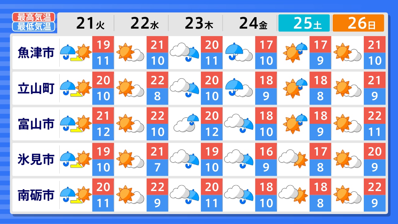 氷見市 高岡市 南砺市 富山市 朝日町 魚津市 立山町