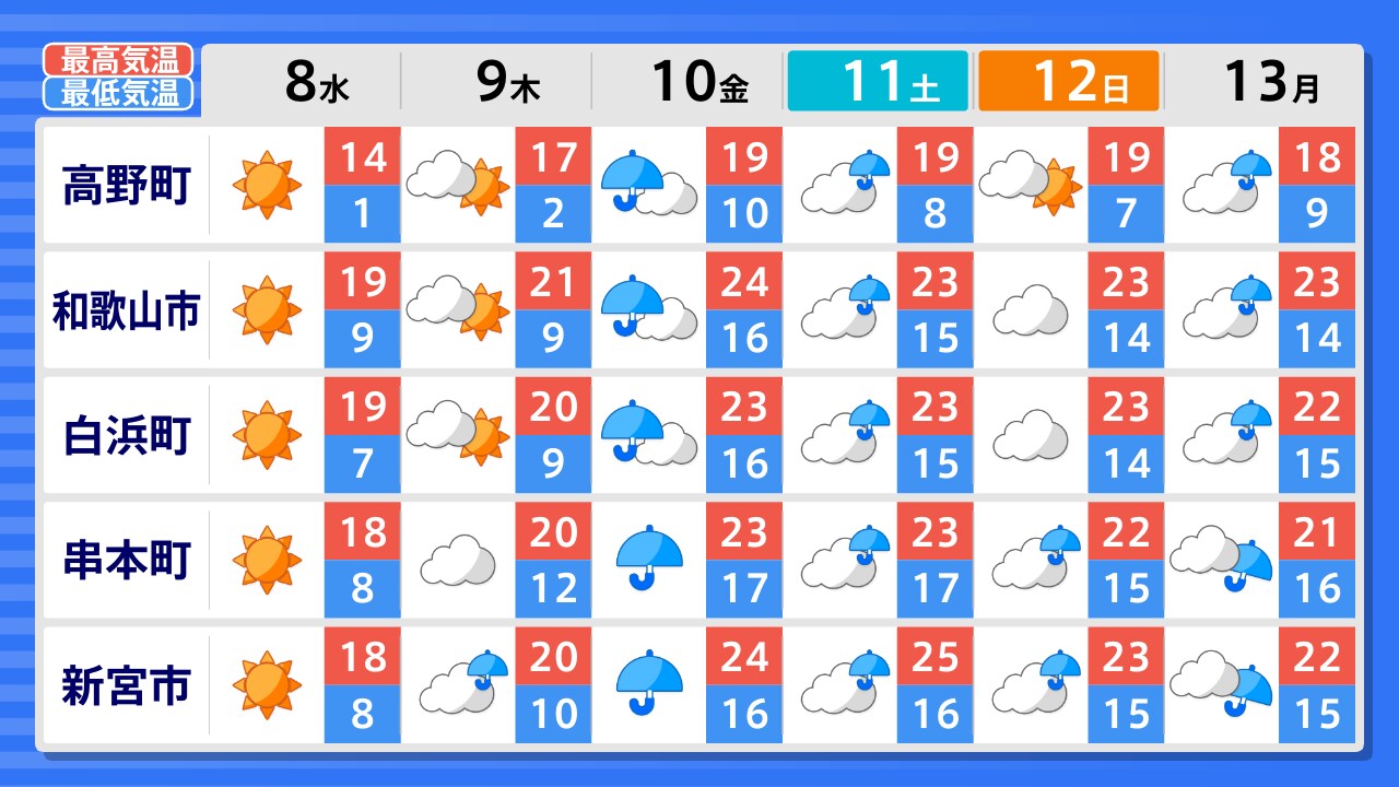 和歌山市 有田川町 御坊市 高野町 田辺市 白浜町 すさみ町 北山村 新宮市 串本町