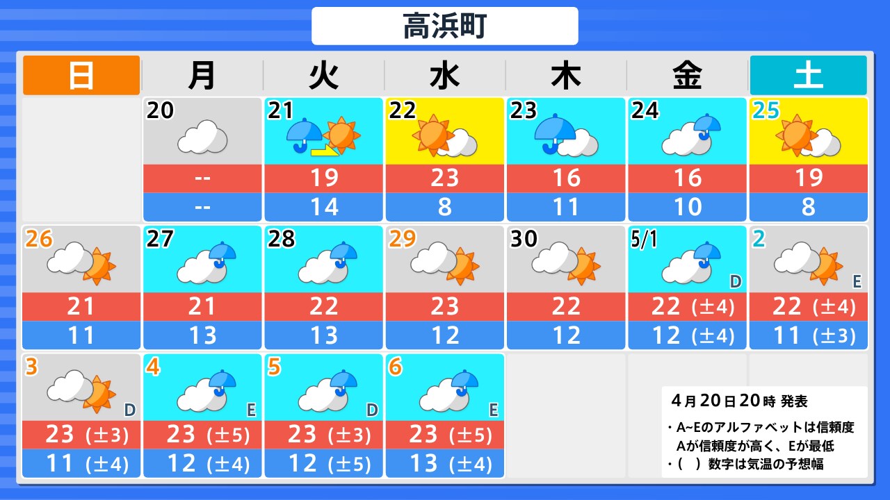 4月20日(月)の天気