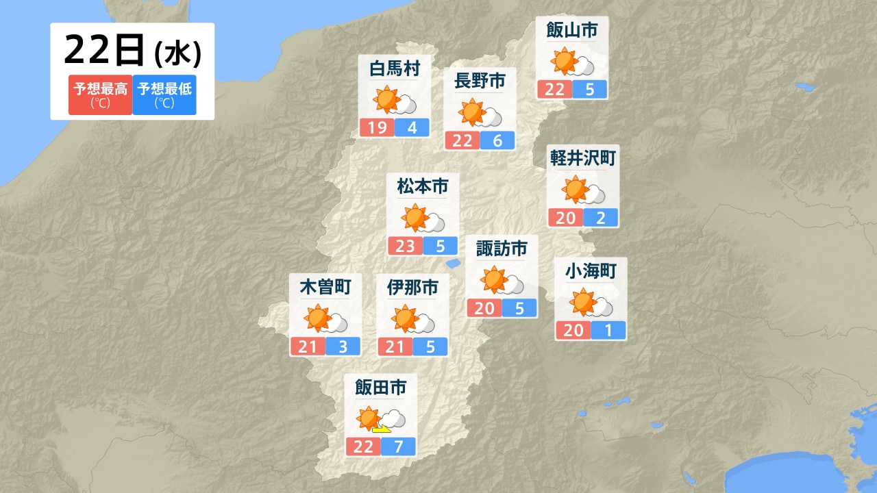 白馬村 長野市 飯山市 軽井沢町 松本市 諏訪市 小海町 木曽町 伊那市 飯田市